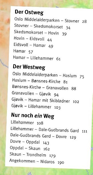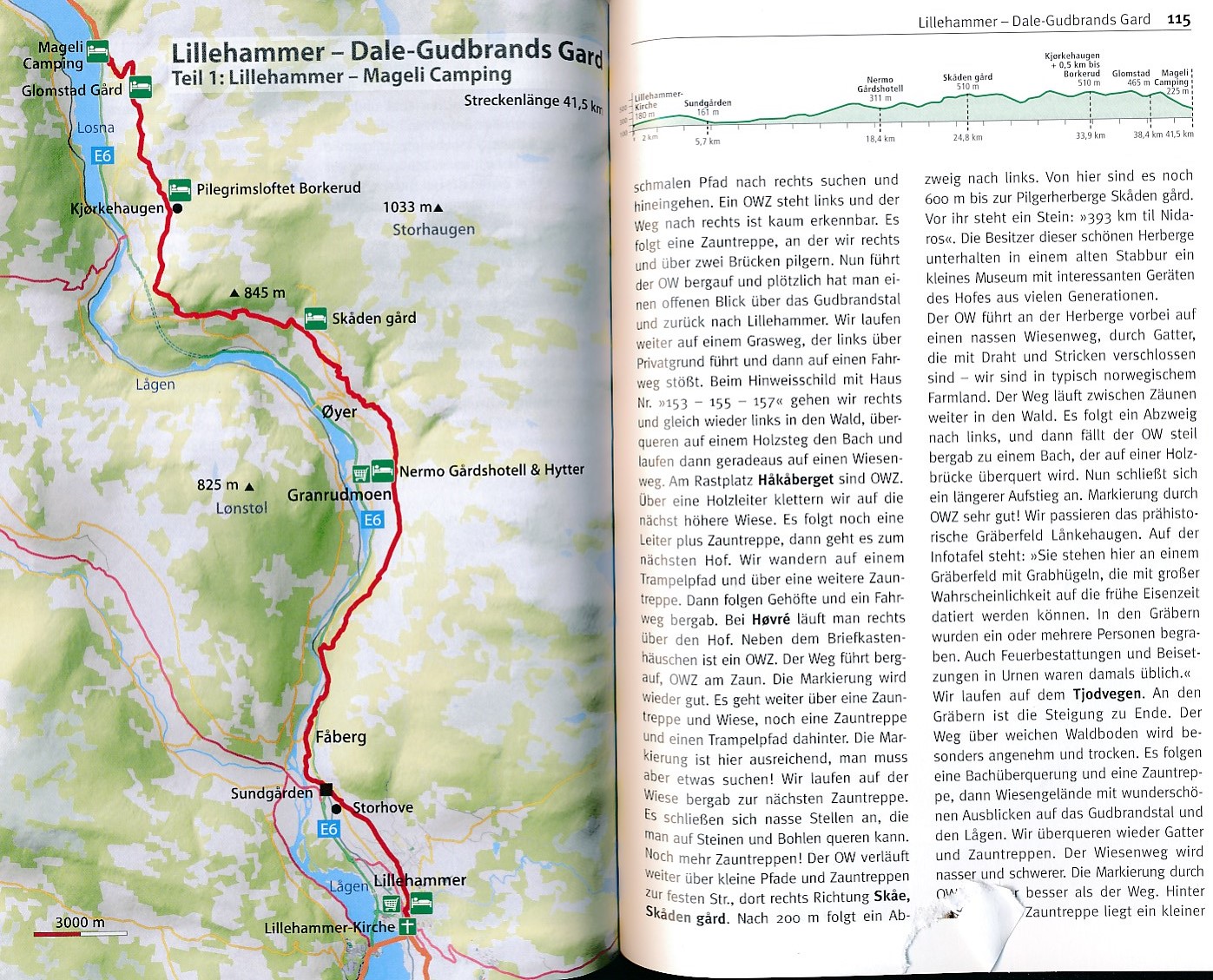 Opvallend - want bij gebrek aan betere - goede beschrijving van de route tussen Oslo en Trondheim met redelijke kaarten en praktische informatie. Met hoogteprofielen en overzichtskaarten.