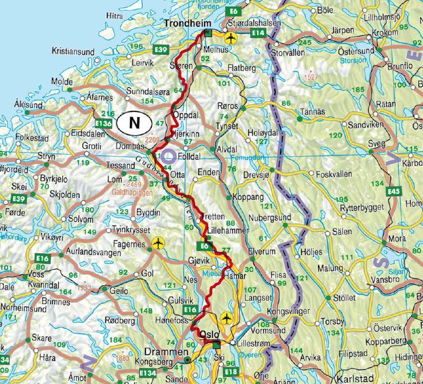 Von Oslo über Mjøsasee und Dovrefjell nach Trondheim