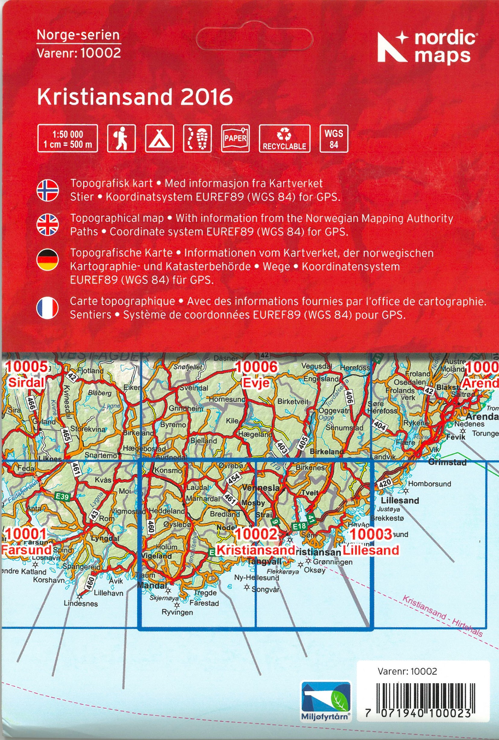 Wandelkaart - Topografische kaart 10002 Norge Serien Kristiansand | Nordeca (7071940100023)