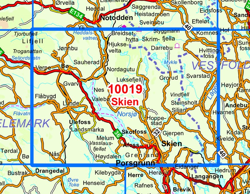 - Wandelkaart - Topografische kaart 10019 Norge Serien Skien | Nordeca