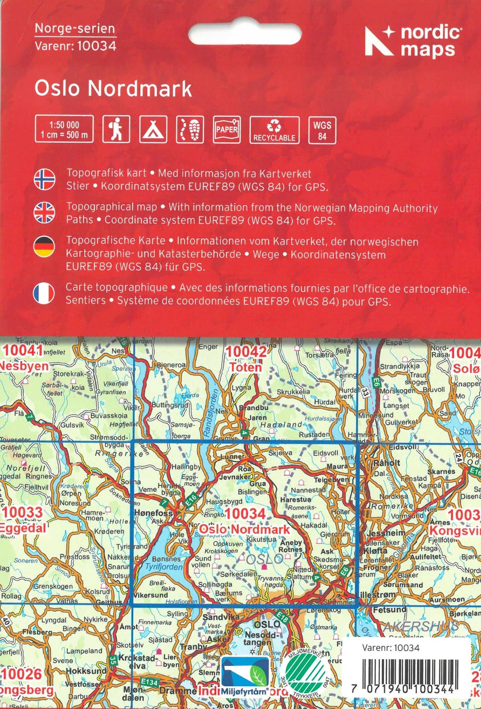 Wandelkaart - Topografische kaart 10034 Norge Serien Oslo Nordmark | Nordeca (7071940100344)