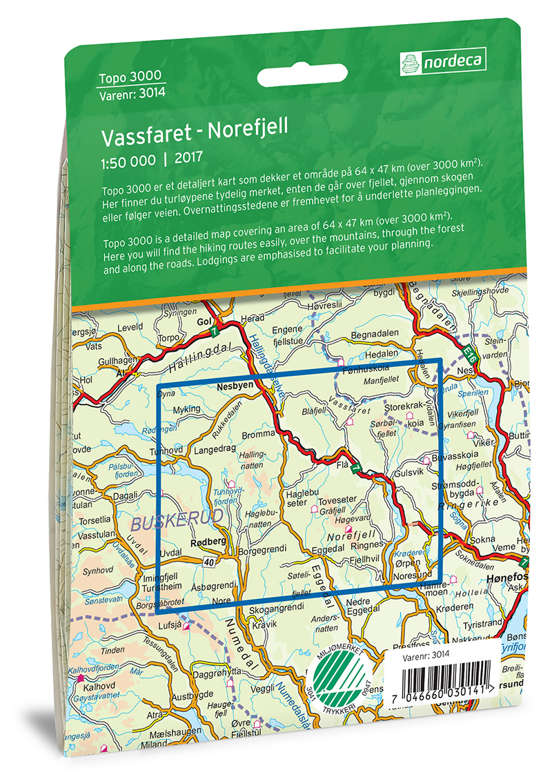 Wandelkaart 3014 Topo 3000 Vassfaret - Norefjell | Nordeca (7046660030141)