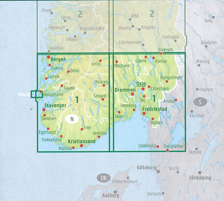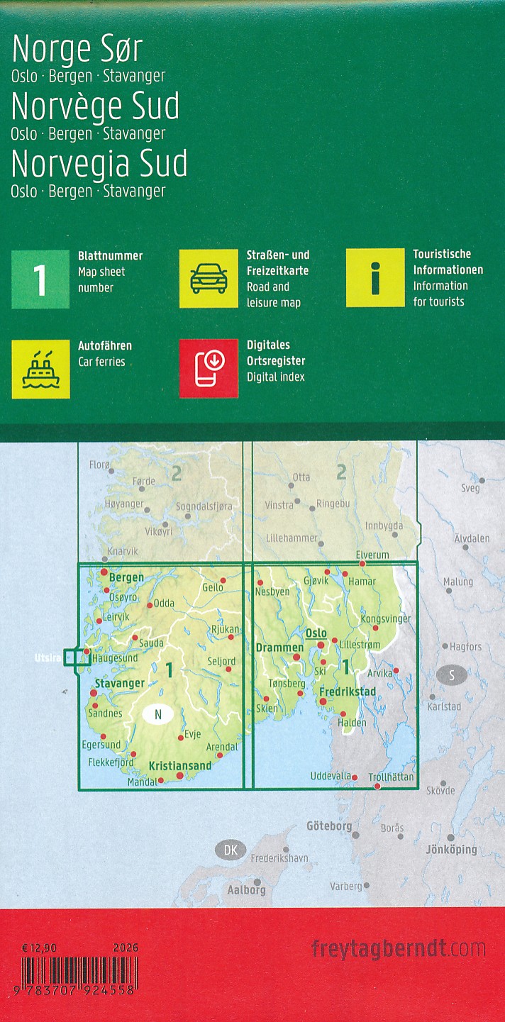 Wegenkaart - landkaart 1 Noorwegen Zuid Oslo - Bergen - Stavanger, Norwegen Süd | Freytag & Berndt (9783707924558)