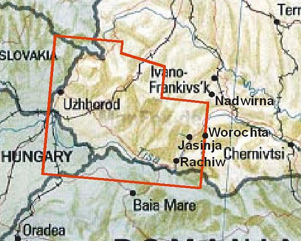Zeer gedetaillerde wegenkaart van de Oekrainse Waldkarpaten (Karpato) en Sakarpatskaya Oblast