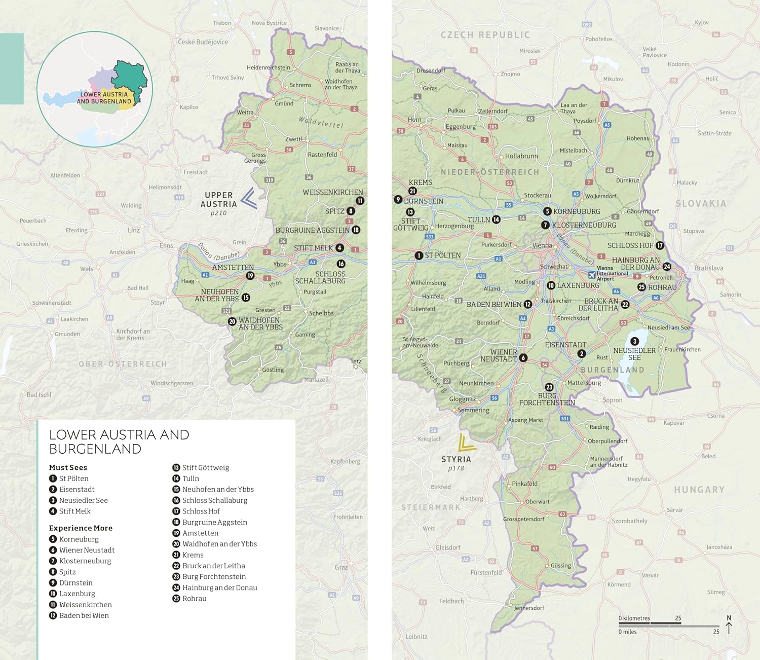 - Covers: Vienna Inner City, North of Mariahilfer Strasse, South of the Ring, Beyond the Centre, Lower Austria and Burgenland, Styria, Upper Austria, Salzburger Land, Tyrol and Vorarlberg, Carinthia and East Tyrol.