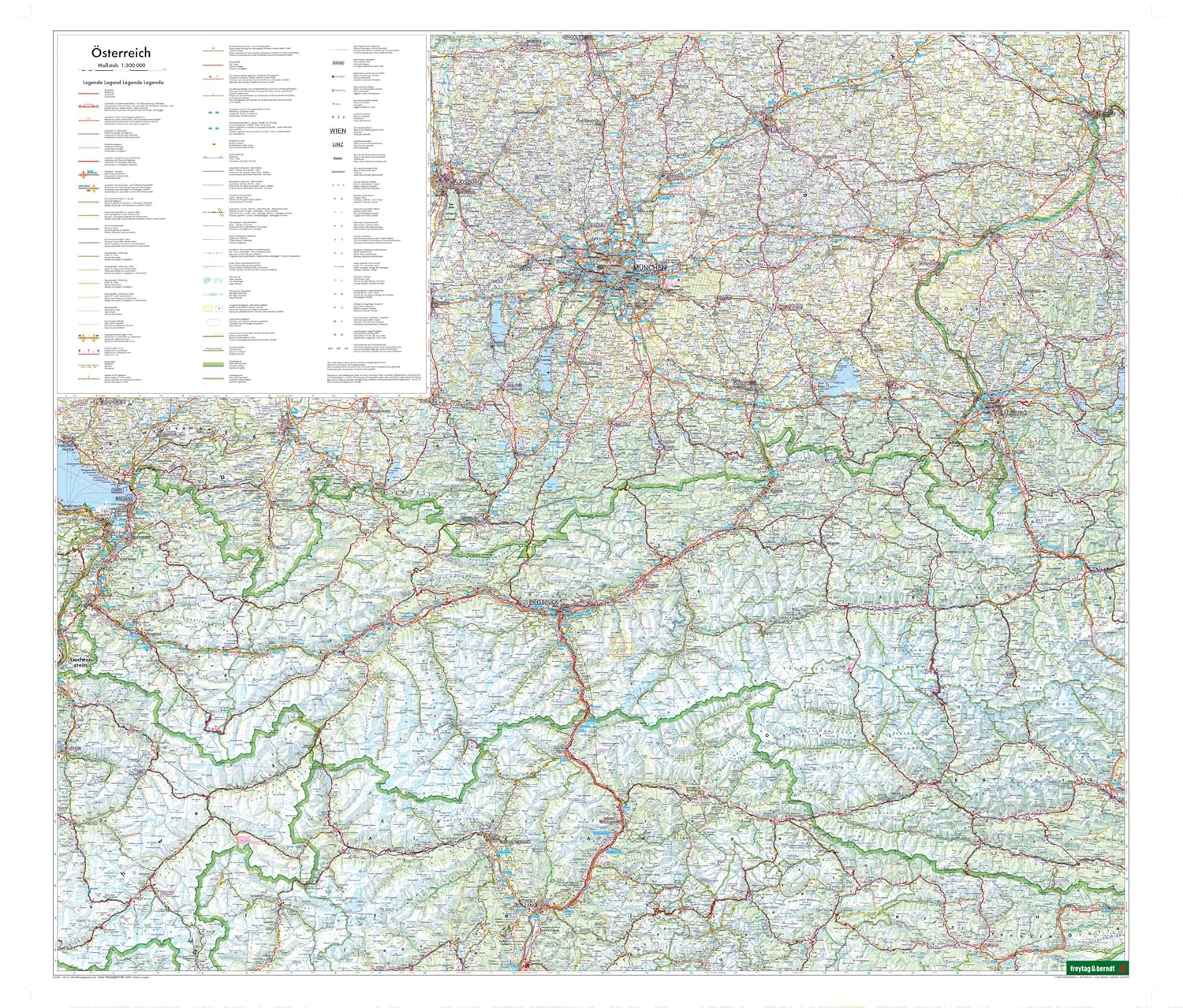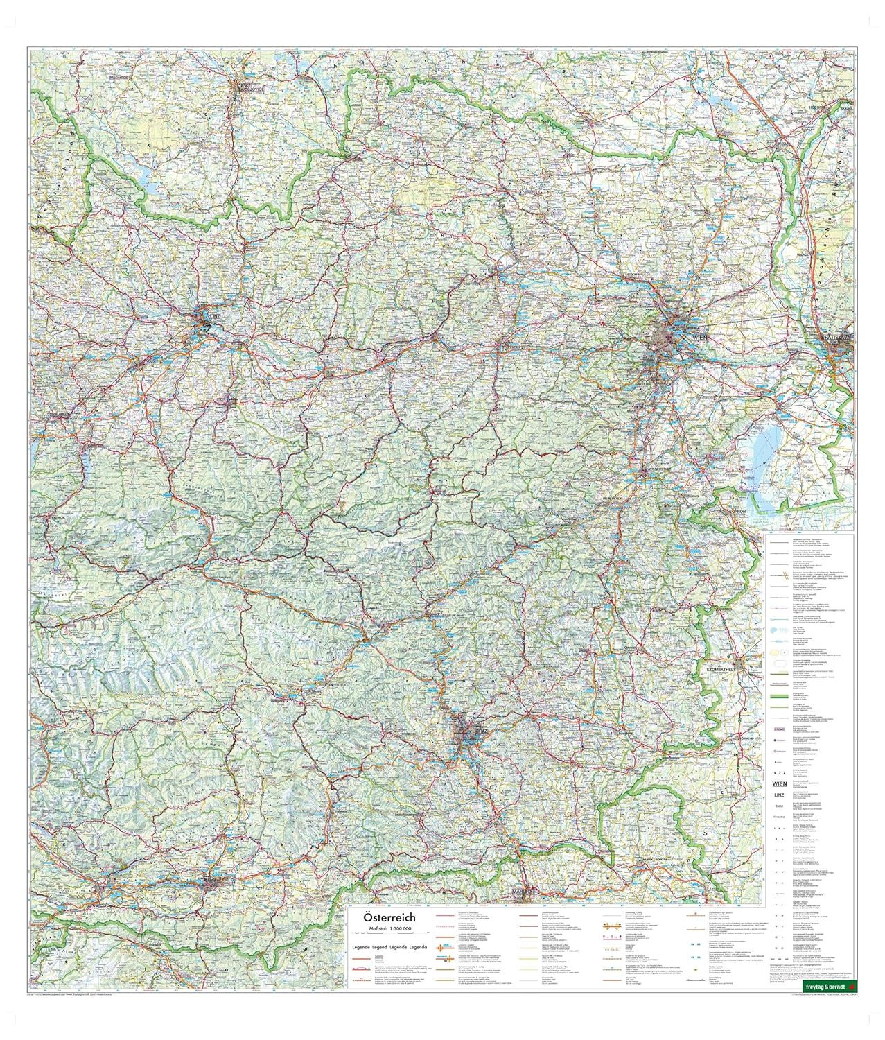 Oostenrijk fb 1:300.000Met de wegenkaart van Oostenrijk op schaal 1:300.000 kunnen vakantiegangers die met de auto, motor of caravan onderweg zijn, zich uitstekend oriënteren. Het wijdvertakte wegennet is nauwkeurig weergegeven, afstanden en vele uitstapjes zijn op de kaart aangegeven.