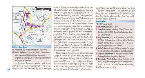 Praktische fietsgids met detailkaarten, ingetekende route, informatie over overnachten en fietsenmakers, zwaarte en hoogteprofiel. In spiraalbinding, Duitstalig. Van de bron naar Bad Radkersburg, lengte 470 km.