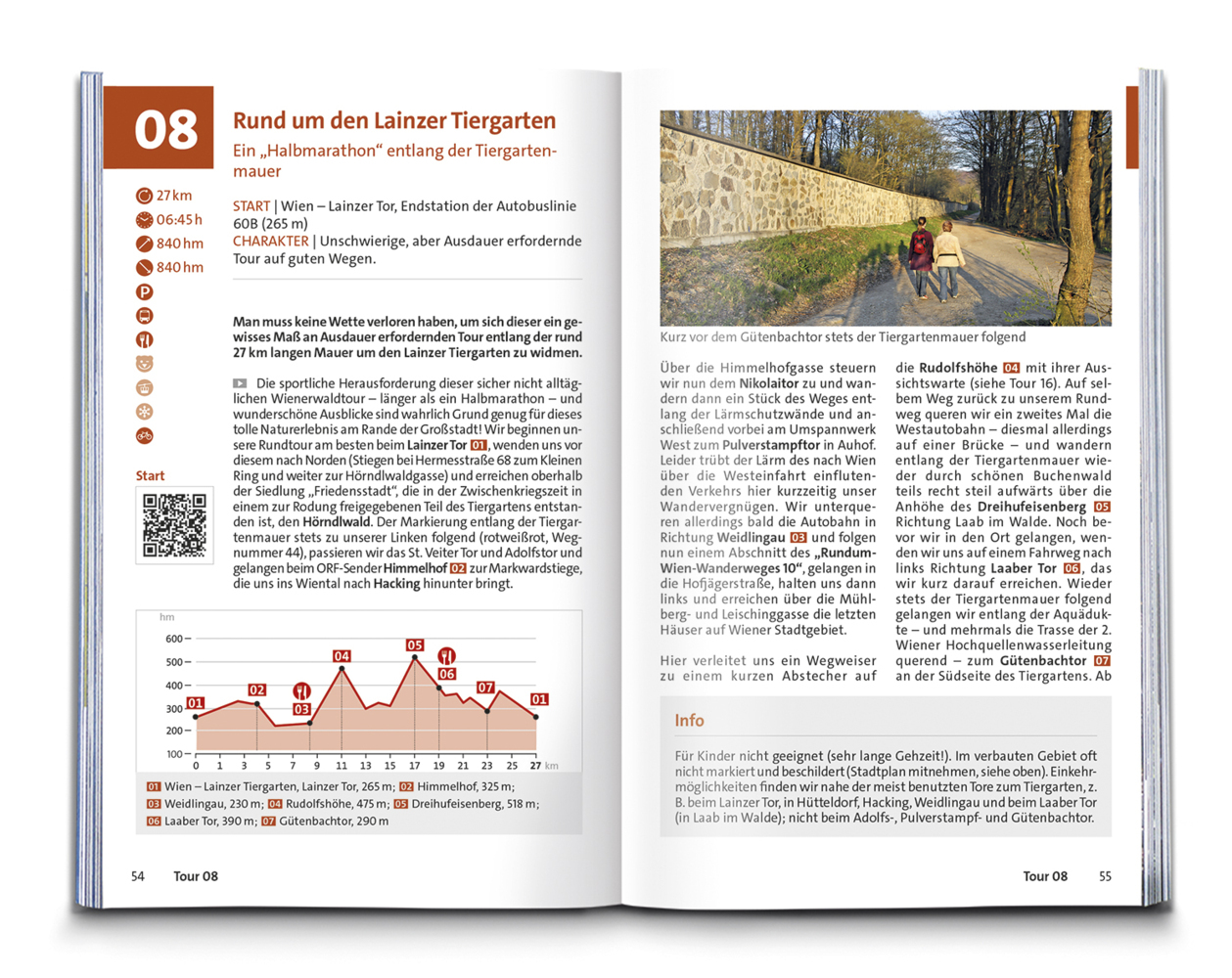 Der Wienerwald als klassisches Wandergebiet in Wien sowie seiner unmittelbaren Umgebung bietet zahlreiche Wanderrouten, die oft sogar bestens mit Bim und Bus erreichbar sind. Gerade entlang der Thermenlinie bieten die herrlichen Föhrenbestände Genusstouren für die ganze Familie und jede Jahreszeit. - Als Wanderregion bis vor kurzem weitgehend unberührt, entwickelte sich das Weinviertel in den letzten Jahren zu einem Geheimtipp für Tagesausflüge am Rand der Großstadt. Besonders reizvoll ist das Wandern und Einkehren in einer der zahlreichen Kellergassen. - Das Waldviertel als skandinavisch anmutende Landschaft mit ihren scheinbar wahllos in dieser verstreuten Granitblöcken ist eine wahre Genussregion für alle, die Erholung auf einsamen Wegen suchen. Kurzinfo zum Produkt: - Das sportliche Highlight: Die Tour (3-4 Tage) entlang des Kamp von Rosenburg bis Zwettl mit zahlreichen Varianten zu Burgen, Aussichtsfelsen und Badeplätzen - Waldviertel, Kultur und Natur pur! - Die Familien-Highlights: Die Praterrunde, der Planeten-Wanderweg auf den Tulbinger Kogel, der Naturpark Sparbach mit riesigem Spielplatz und Wildgehegen sowie der Naturpark Blockheide bei Gmünd mit dem Lehrpfad Marienkäferweg und den 'Wackelsteinen'. - Die Genuss-Highlights: