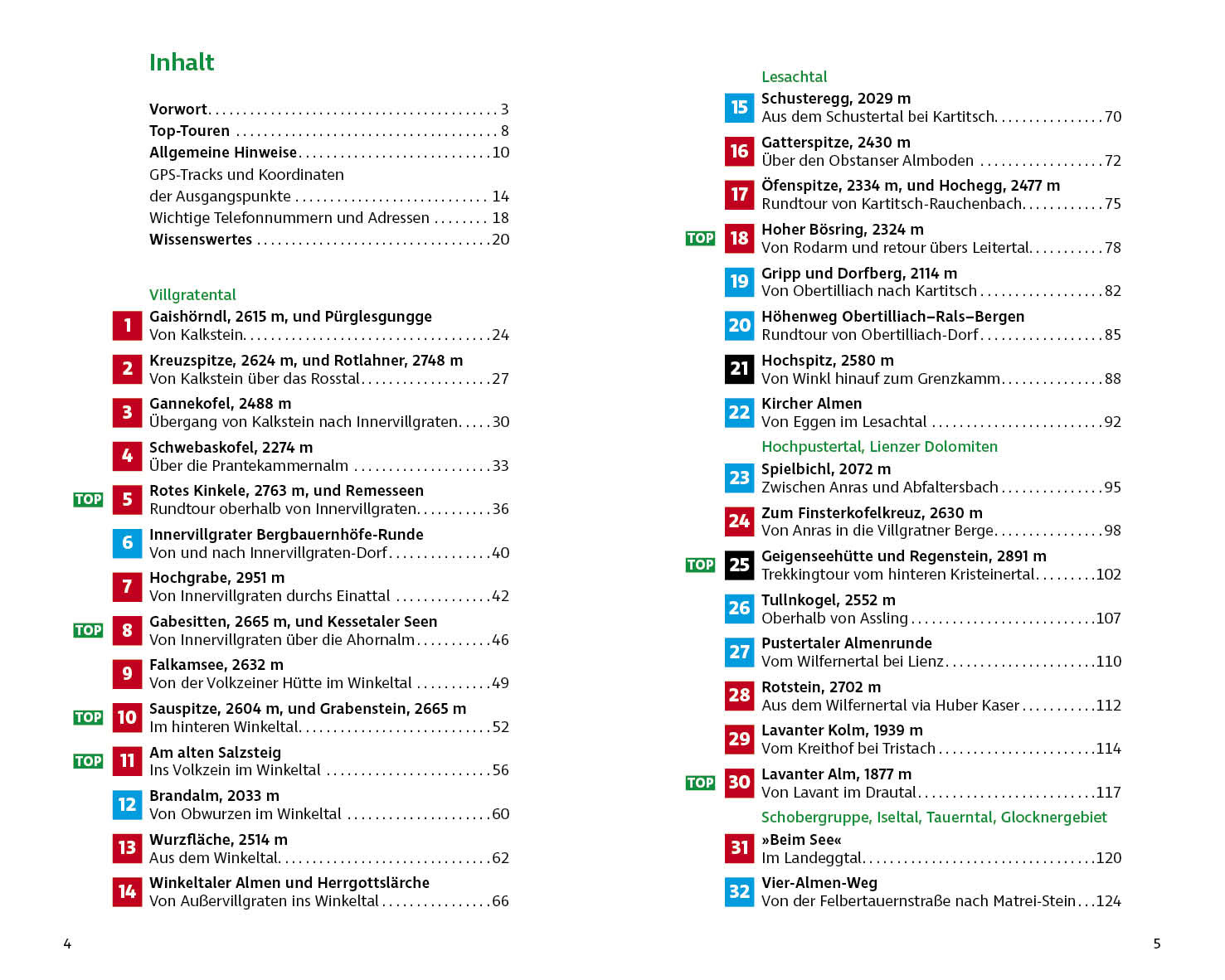 Abgeschiedene Bergidylle kann man im Villgraten-, Defereggen- und Virgental finden. Auf schmalen Pfaden lässt es sich hier über urtümliche Almwiesen und zu verschwiegenen Bergseen wandern. Einsame Höhenwege und Gipfel, die man sich nur mit Gams und Steinbock teilt, finden sich auch im Nationalpark Hohe Tauern, in der Schober-, Lasörling- und Venedigergruppe. Selbst wenn Wanderungen mitunter an populären Ausgangsorten wie Kals, Matrei in Osttirol oder St. Jakob in Defereggen starten, verlassen sie die vielbegangenen Routen schnell. So kann man das Bergpanorama in aller Stille auf sich wirken lassen. Meistens muss man auch seine Jause selbst mitnehmen, denn vielen malerischen Almen haben keinen Ausschank. Belohnt wird man auf diesen Wanderungen mit Bergeinsamkeit und einem unverstellten Blick auf das »Berg-Tirol«. Und mit etwas Glück sieht man sogar einen Steinadler.