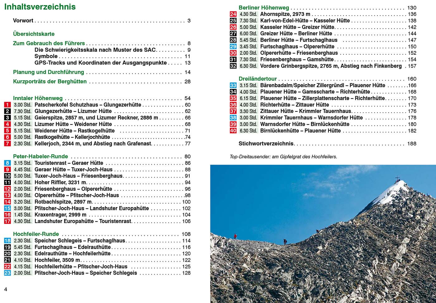 40 Höhenprofile, 40 Wanderkärtchen im Maßstab 1:75.000, zwei Übersichtskarten, GPS-Tracks zum Download