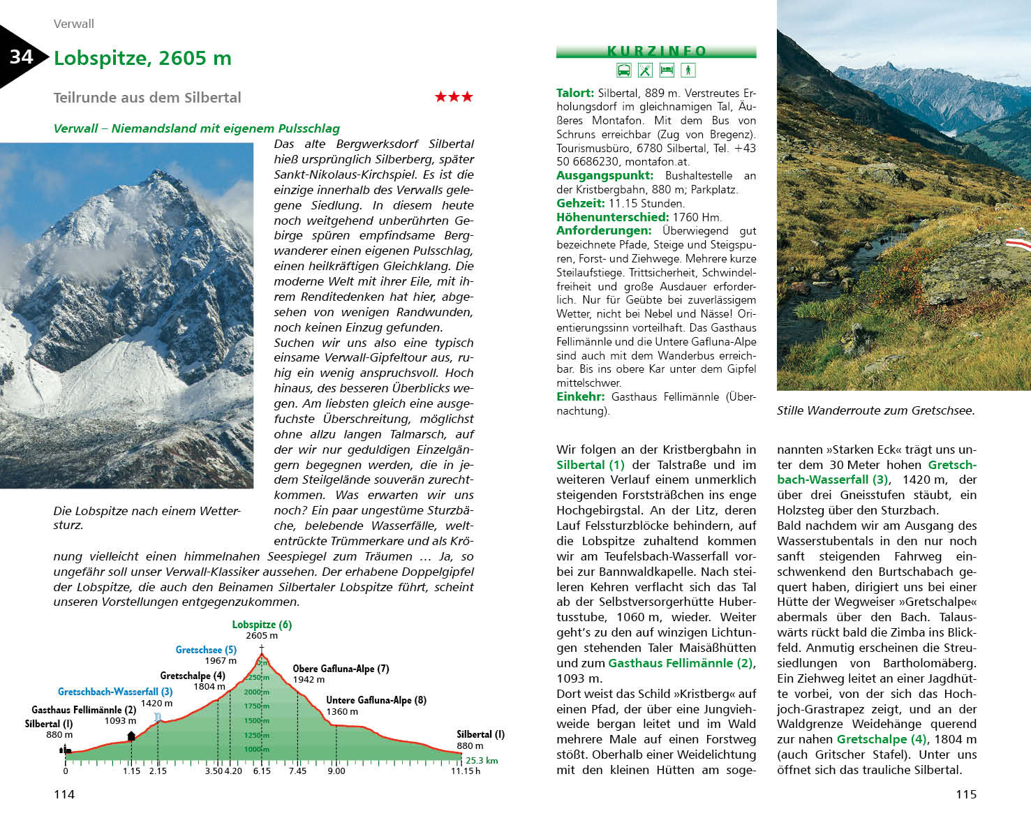 Das neue Vorarlberger Wanderwege-Konzept macht diesen faszinierenden, mal lieblichen, mal recht wilden Westen Österreichs noch attraktiver. Die stets ausführlich beschriebenen und meist mit öffentlichen Verkehrsmitteln erreichbaren Routen, von kinderfreundlich bis ausgedehnt-anspruchsvoll, erschließen auf 50 Touren rund 80 Gipfel. Wem eine Unternehmung zu lang erscheint, der entdeckt viel versprechende Zwischenziele: ein verstecktes Maisäß oder eine urgemütliche Hütteneinkehr, einen farbenprächtigen Bergsee oder gischtenden Wasserfall.