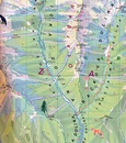 Goede wandelkaart van het grote westelijke deel van het Tatra gebergte, zowel aan de Poolse als aan de SLowaakse kant. Wandelpaden, campings, hutten, alles staat er op.