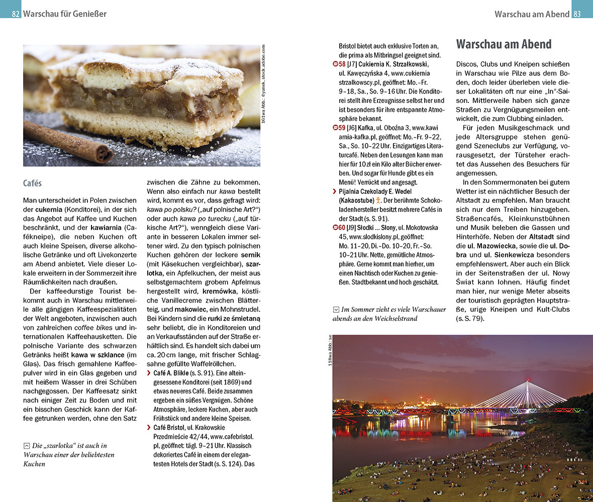 Warschau ist eine der führenden und aufregendsten Großstädte Osteuropas und lebt vom Charme des Widersprüchlichen. Hier trifft Hightech-Architektur auf sozialistische Monumentalbauten, eine traditionsreiche Altstadt auf junge Kunst, angesagte Clubs und moderne Einkaufspassagen. Zudem kann man an jeder Ecke hautnah die bewegte Geschichte der Stadt erleben. Überall ist der Wandel zu spüren, der die polnische Hauptstadt in den letzten Jahrzehnten so sehr verändert hat, dass man die Weichselmetropole kaum wiedererkennt, wenn man sie ein paar Jahre nicht besucht hat. Das gilt nicht nur für die Innenstadt, sondern auch für von Touristen weniger stark frequentierte Bezirke wie das aufstrebende Praga.