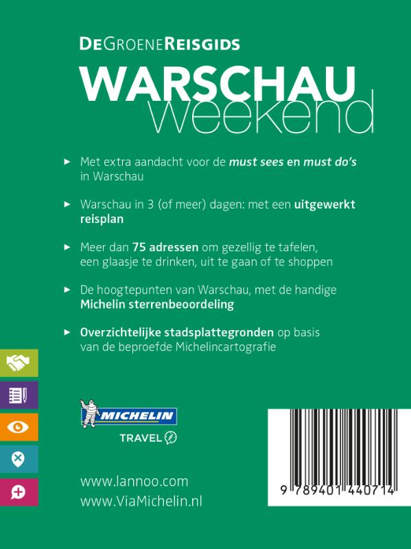 Met extra aandacht voor de must sees en must do's in Warschau - Warschau in 3 (of meer) dagen: met een uitgewerkt reisplan - Meer dan 75 adressen om gezellig te tafelen, een glaasje te drinken, uit te gaan of te shoppen - De hoogtepunten van Warschau, met de handige Michelin sterrenbeoordeling - Overzichtelijke stadsplattegronden op basis van de beproefde Michelincartografie.