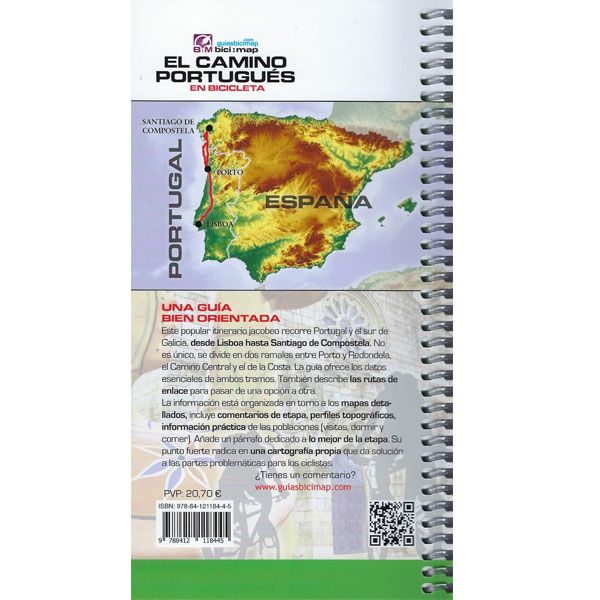 Vertaling: Van de routes naar Santiago die de Portugese geografie doorkruisen, is de Caminho Português Central de meest traditionele en ontwikkelde. Het verlaat Lissabon en in Porto is het verdeeld in drie routes, de Central die landinwaarts verder gaat, de Caminho da Costa met de Senda Litoral en de Camino de Braga, praktisch in onbruik geraakt. Galicië volgt dezelfde dynamiek en, naast de officiële route, combineren de Spirituele Variant en de Padre Sarmiento-route de essentie van het pad door de zeegezichten van de Rías Baixas. Een netwerk van onderlinge verbindingen verrijkt de meer dan 900 km Portugees-Galicisch gebrabbel. Met de bici:map-gids kunt u uw route kiezen op basis van uw wensen.