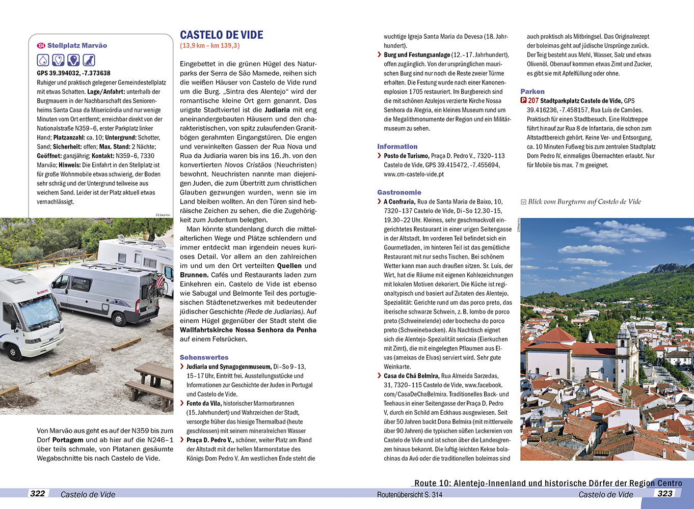 Zehn detailliert ausgearbeitete und kombinierbare Routenvorschläge Park-, Camping- und Stellplätze mit allen Details Stadtbesichtigungen mit geeigneten Stell- und Parkplätzen Sehenswürdigkeiten, Restaurants und Einkaufsmöglichkeiten Sechs übersichtliche Stadtpläne, abgestimmt mit dem Text Die schönsten Strände an der Atlantikküste 38 Seiten Routenatlas mit Camping- und Stellplätzen Durchgängig GPS-Daten Ver- und Entsorgungsstellen entlang der Routen Ratschläge zur Sicherheit und Pannenhilfe Kurzweilige Exkurse zu historischen und kulturellen Themen Deutsch-Portugiesisch-Wörterliste mit speziellem Womo-Vokabular