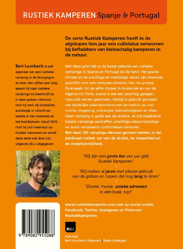 De serie Rustiek Kamperen heeft in de afgelopen tien jaar een cultstatus verworven bij liefhebbers van kleinschalig kamperen in de natuur. Met deze gids heb je de beste selectie van rustieke campings in Spanje en Portugal bij de hand. Het goede klimaat en de prachtige en veelzijdige natuur zijn uitermate geschikt voor een kampeervakantie. Van de groene Pyreneeën tot de witte dorpen in Andalusië en van de Algarve tot Porto, overal is wel een prachtig gelegen, natuurlijk terrein gevonden. Hierbij is gebruik gemaakt van duidelijke selectiecriteria met de nadruk op rust, ruimte, omgeving, ontvangst, kleinschaligheid en sfeer. Geen camping is gelijk aan de andere. Je zult piepkleine basale campings aantreffen, prachtige natuurcampings en soms verrassend comfortabele terreinen. Wat deze 100 campings allemaal gemeen hebben, is het predicaat rustiek: ver van de drukte, de massaliteit en de onpersoonlijkheid.