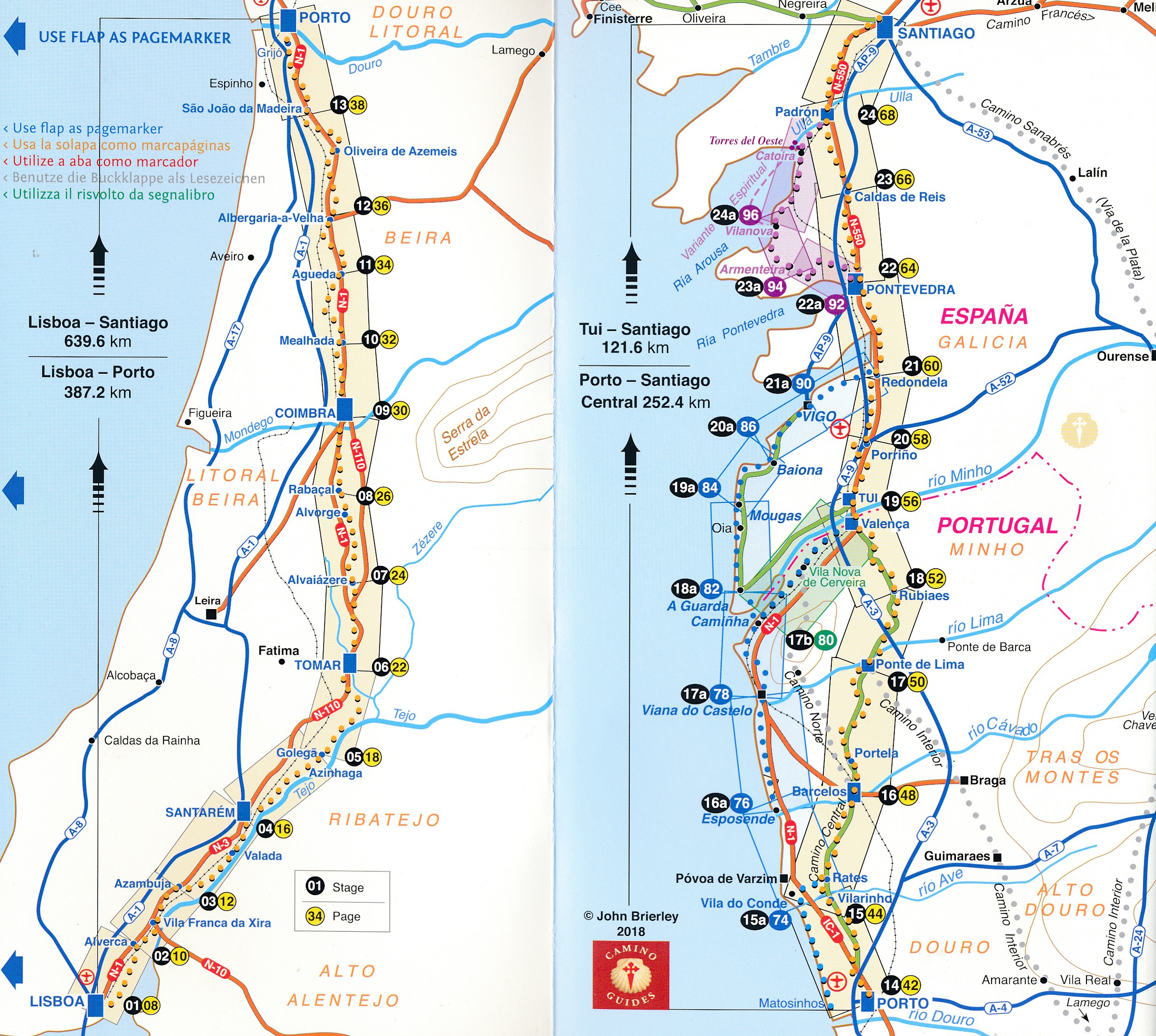 Wandelkaart - Pelgrimsroute Camino Portugues Maps | Camino Guides Brierley (9781912216147)