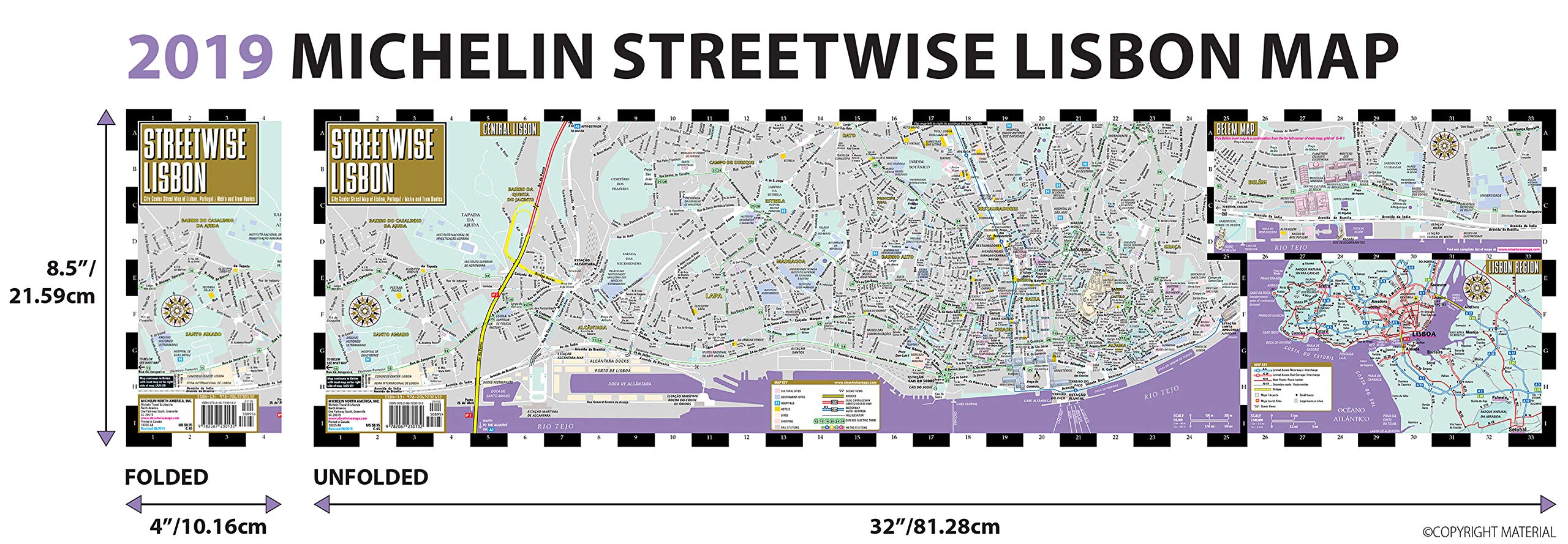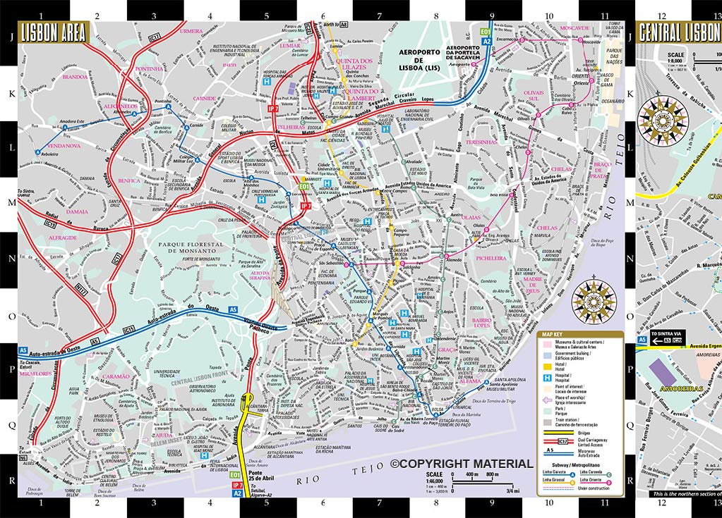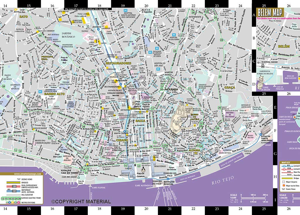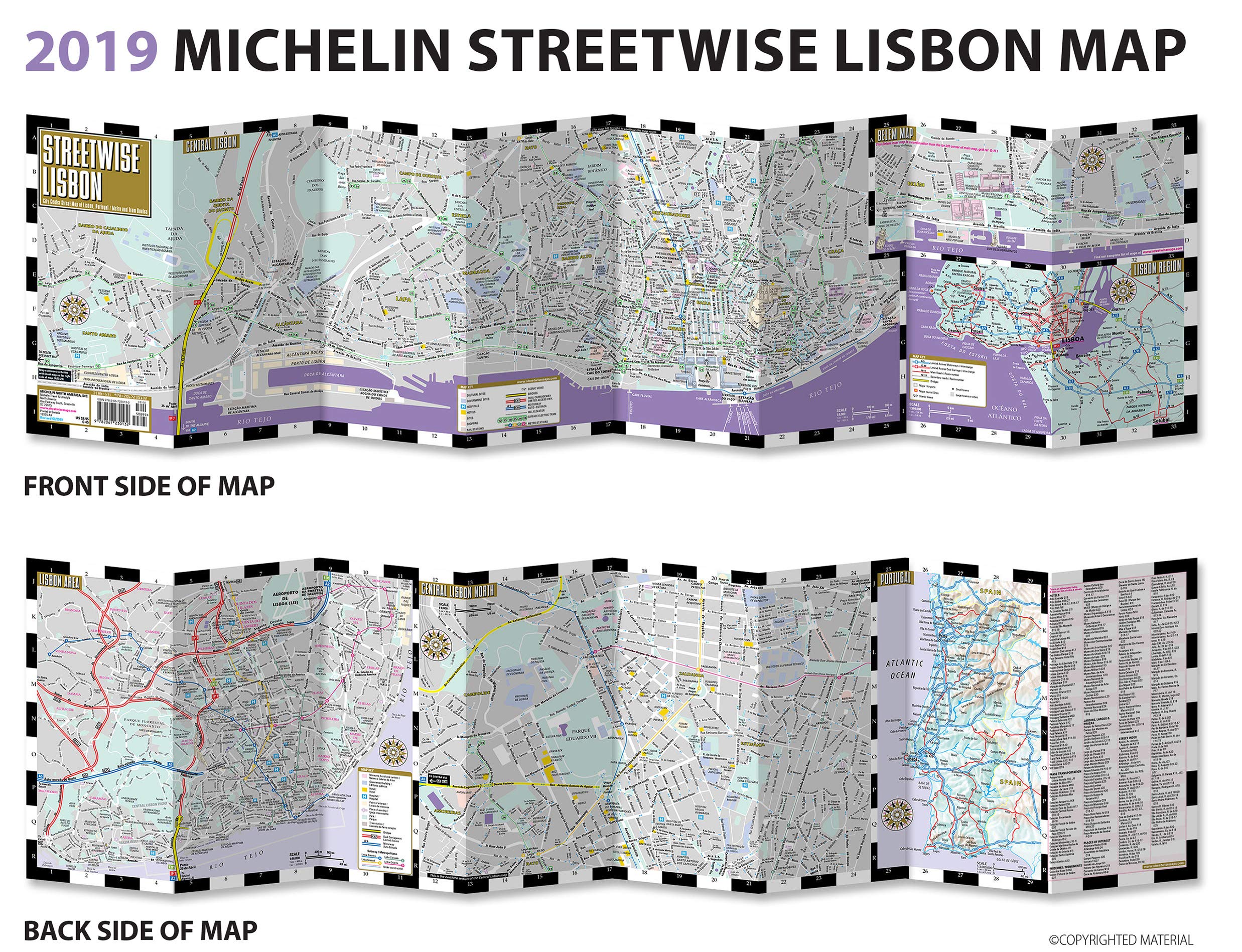 Laminated City Center Street Map of Lisbon, Portugal: City Plans