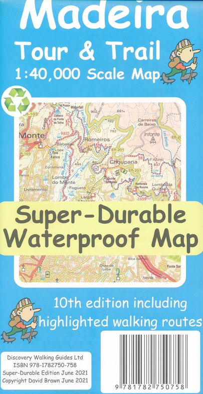 Our large 1:40,000 scale, combined with splitting the island into East and West with a generous overlap, produces double sided map whose total size is 840mm by 600mm and folds to 235mm by 120mm. You get the most detailed map of Madeira that is produced including our 'Tour & Trail' level of detail ranging from major roads to secondary roads to minor roads to streets and camino rural narrow country roads, plus dirt roads and walking trails. Altitude background colouring is designed to clearly show the altitude range when travelling across the island by car or on foot. 100 metre and 50 metre contours are clearly shown on the map along with a large number of individual height points and all of the official 'Trig' points. Tour & Trail attention to detail is legendary as is our useful symbol range including miradors, picnic areas, petrol stations, bar/restaurants and parking areas where you can pull off the road safely. You will easily identify springs, caves, sports grounds, cemeterys, churchs, chapels, lighthouses, towers and forts, camping areas, wind turbines, hotels etc. For adventurers on foot Tour & Trail Maps are researched and designed by hikers for use by hikers. Our comprehensive gps ground surveys produce the best road mapping available but the value of this "on the ground research" becomes even more important when you leave the tarmac. All of our DWG walking routes are accurately gps surveyed giving you confidence in the accuracy of our Tour & Trail Maps. Madeira Tour & Trail Map 8th edition includes all the walking routes from 'Madeira Walks' volumes 1 & 2 by Shirley Whitehead, also published in 2015. It all adds up to the most useful map of Madeira that you can buy anywhere. In use maps have a very tough life so you will appreciate our specialist concertina map fold that allows you to quickly open the map, and more importantly fold it back up to its pocket size after use. Paper maps will always suffer from the repeated unfolding, folding to the section you want to use, and then refolding. We recommend everybody to obtain our Super-Durable editions printed with 100% oxygenation inks on Polyart by the UK's leading map printer, which produces a map that feels like silk but will stand up to the roughest treatment of outdoor adventuring and yet fold up like new at the end of your adventure. Tour & Trail Super-Durable Maps are more expensive than paper maps, but represent better value.