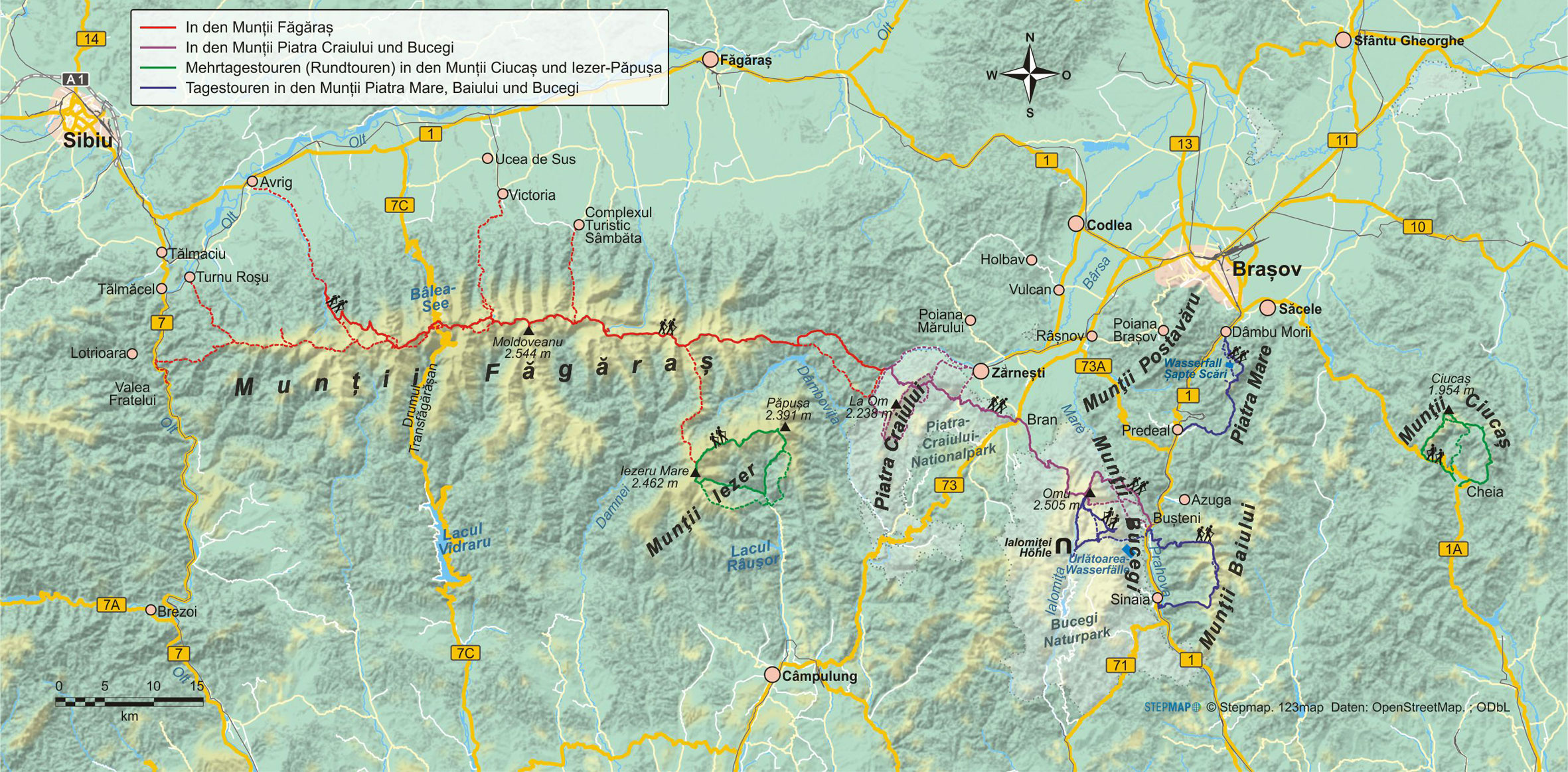 Duidelijke beschrijving van een meerdaagse wandeltocht in door het Roemeense deel van de Karpaten. Hoogeteprofielen, veel praktische informatie en redelijk kaartmateriaal.