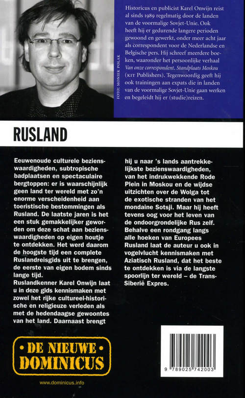 Eeuwenoude culturele bezienswaardigheden, subtropische badplaatsen en spectaculaire bergtoppen. Er is waarschijnlijk geen land ter wereld met zo’n grote verscheidenheid aan toeristische bestemmingen als Rusland. Dominicus vond het daarom tijd voor een complete Ruslandreisgids – de eerste van eigen bodem in meer dan tien jaar tijd. Ruslandkenner Karel Onwijn laat u in deze gids kennismaken met zowel het rijke culturele en religieuze verleden als de hedendaagse gewoonten van het land. Daarnaast brengt hij u naar ’s lands aantrekkelijkste bezienswaardigheden, maar heeft hij ook oog voor het leven van de ondoorgrondelijke Rus zelf.