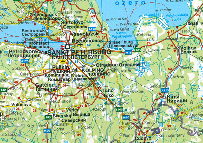 Uitstekende landkaart van Rusland. Met index, toeristische informatie en afstanden in kilometers. Het westen op een schaal van 1 op 2 miljoen en na de Oeral wordt het een grove schaal van 1 op 8 miljoen. Toch een van de betere kaarten van Rusland!