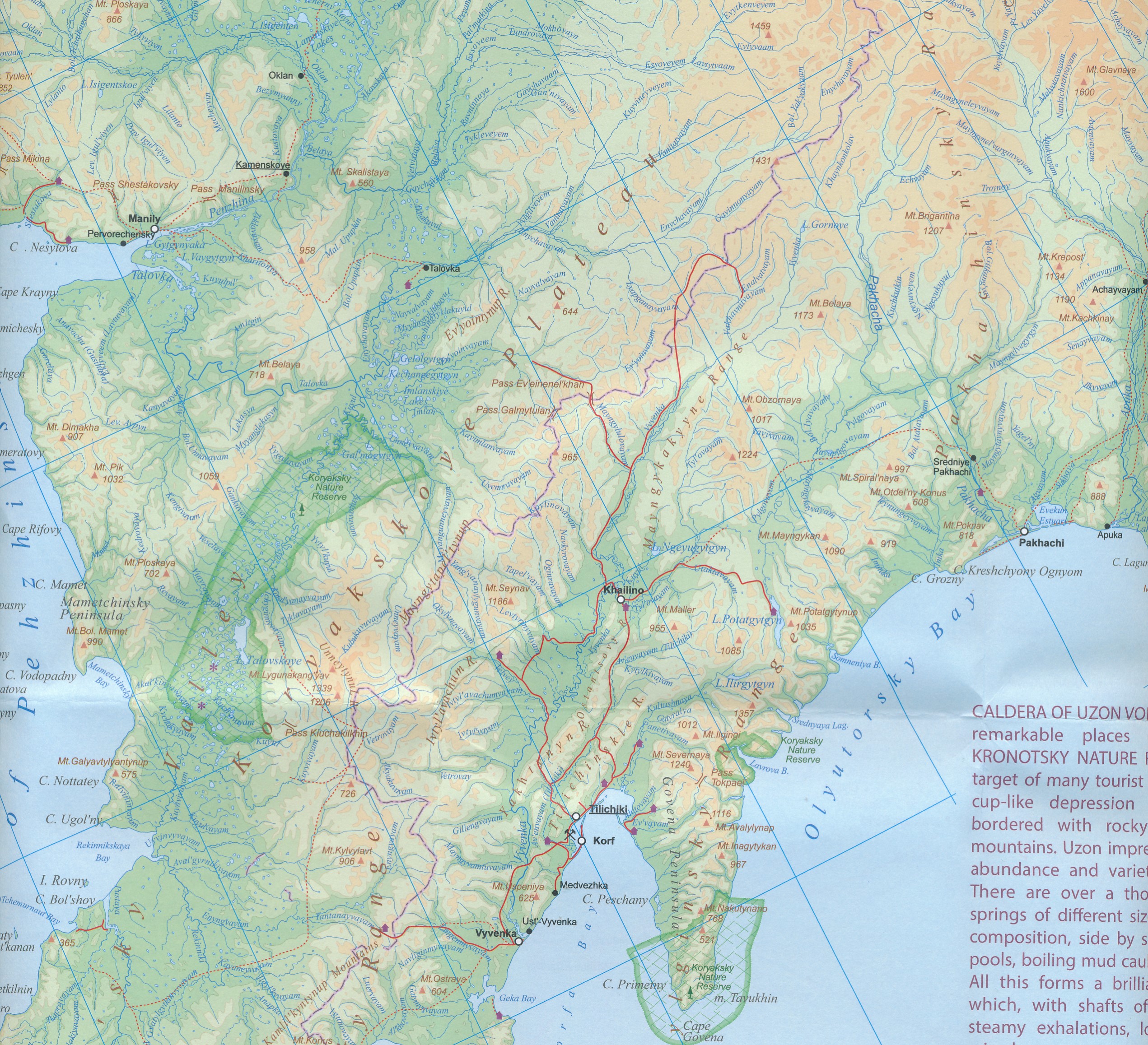 This is the most recently released title in our Russia series. In this revised edition, we have expanded the area of coverage to include the portion of Russia known as the Far East Republic and the eastern portions of Siberia (in January, we released Siberia itself). Lets start with the Kamchatka peninsula itself. This is a very interesting adventure travel destination, famous for its geothermal geysers and its isolation from the rest of Russia. There is only one city of any size, Petropavlovsk Kamchatsky (which I genuinely hope is colloquially known as PK), the capital and location of the peninsula only significant airport. We have included an inset map of the city. We also include a map of the famous Valley of Geysers (south of Klyuchi). Interestingly, the peninsula has a town called Esso. The other side of the sheet portrays a vast region from the Russian occupied island of Sakhalin and the Okhotsk Sea north to that portion of what we call the Arctic Ocean but is really a series of seas (this one being the East Siberian Sea) and west to the Lena River. The Trans Siberian railway west towards Moscow is shown, as well as connections into Mongolia and China. This is not a well known region of Russia and is definitely for the adventurer (I would love to hear from anyone who has stayed at the hotel in Novaya Chara, which is as close to being the middle of nowhere I can imagine. Actually, this portion of Russia is loaded with hotels and camping grounds. The map also shows a fascinating road going from close to the border with China all the way to a bay on the ocean. That would be quite a trip to take!