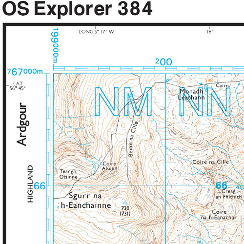 Overzichtskaart Explorer 25.000 topografische kaarten Ben Nevis - Glen Coe