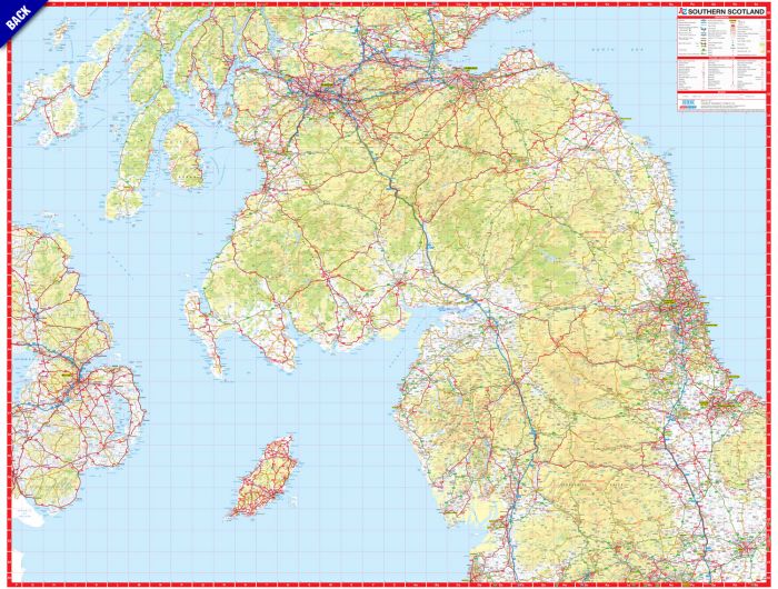 This A-Z map of Scotland North and South is a full colour, double-sided, fold-out road map.