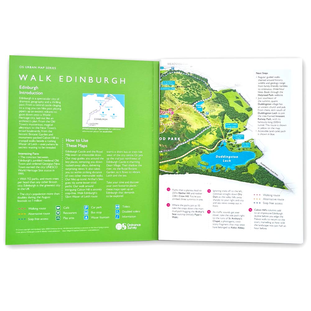 Pocket sized, and coming with its own protective slip case, this double-sided map has everything you need to discover the hidden (and not so hidden) green spaces in Scotland's capital. The map is split into multiple sections, with one for each area. Each area has a map, key points of interest. a suggested route, notes on the history and much more. The OS Urban Walk Edinburgh map is folded in a 'concertina' pattern, so you can easily fold it to show just hte part you are interested in.