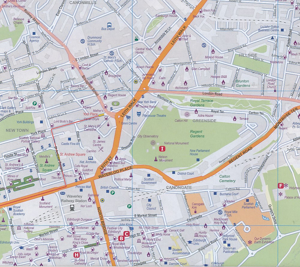 Plattegrond van Edinburgh, schaal 1:10.000, met op de achterzijde een overzichtskaart van zuid Schotland, schaal 1:370.000.
