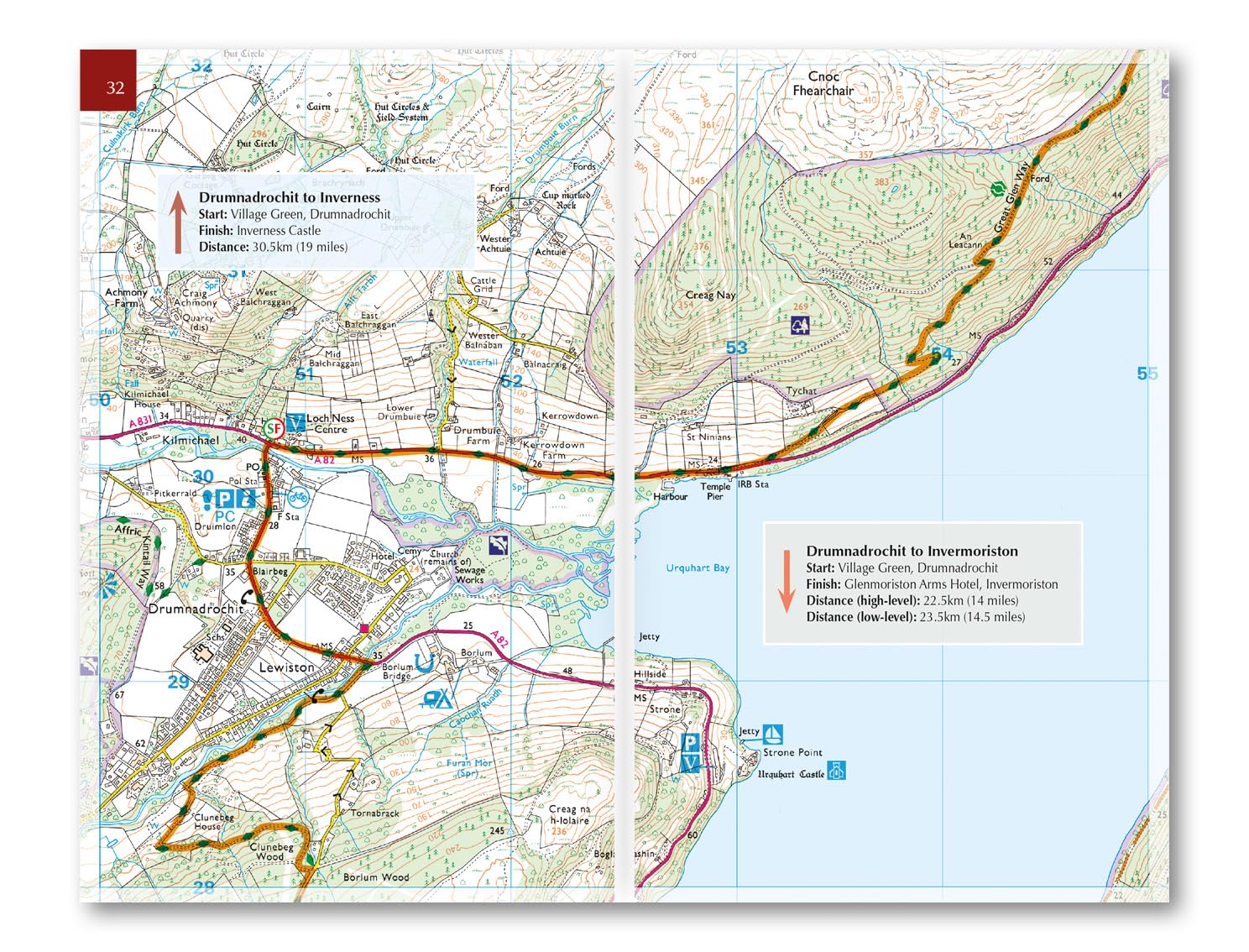 Map of the 79 mile (124km) Great Glen Way (one of Scotland's Great Trails), between Fort William and Inverness. This booklet is included with the Cicerone guidebook to the trail, and shows the full route on Ordnance Survey 1:25,000 maps. The route typically takes a week to walk, and is suitable for walkers at all levels of experience.Seasons: