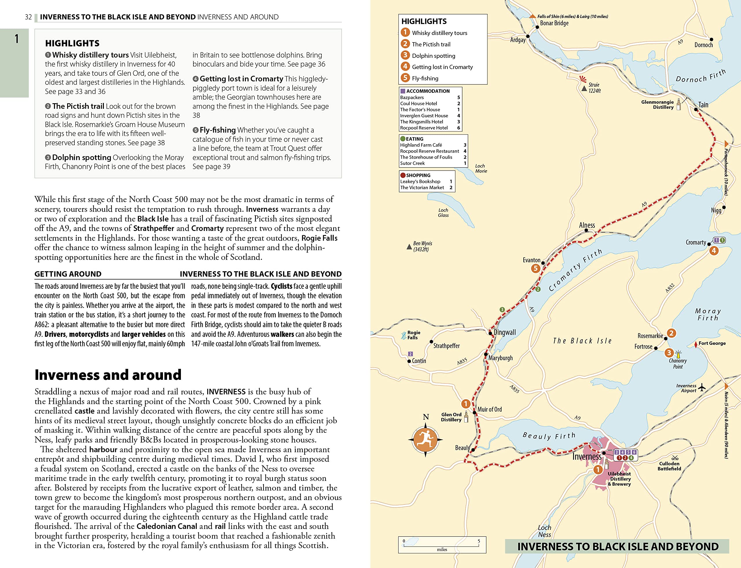 Our colour-coded maps make the North Coast 500 easier to navigate while you're there. This guide book to the North Coast 500 has been fully updated post-COVID-19 and it comes with a free eBook. The Rough Guide to the North Coast 500 covers: Inverness to the Black Isle and beyond, the road to John O'Groats, along the North Coast, exploring the Northwest and Wester Ross to Inverness.