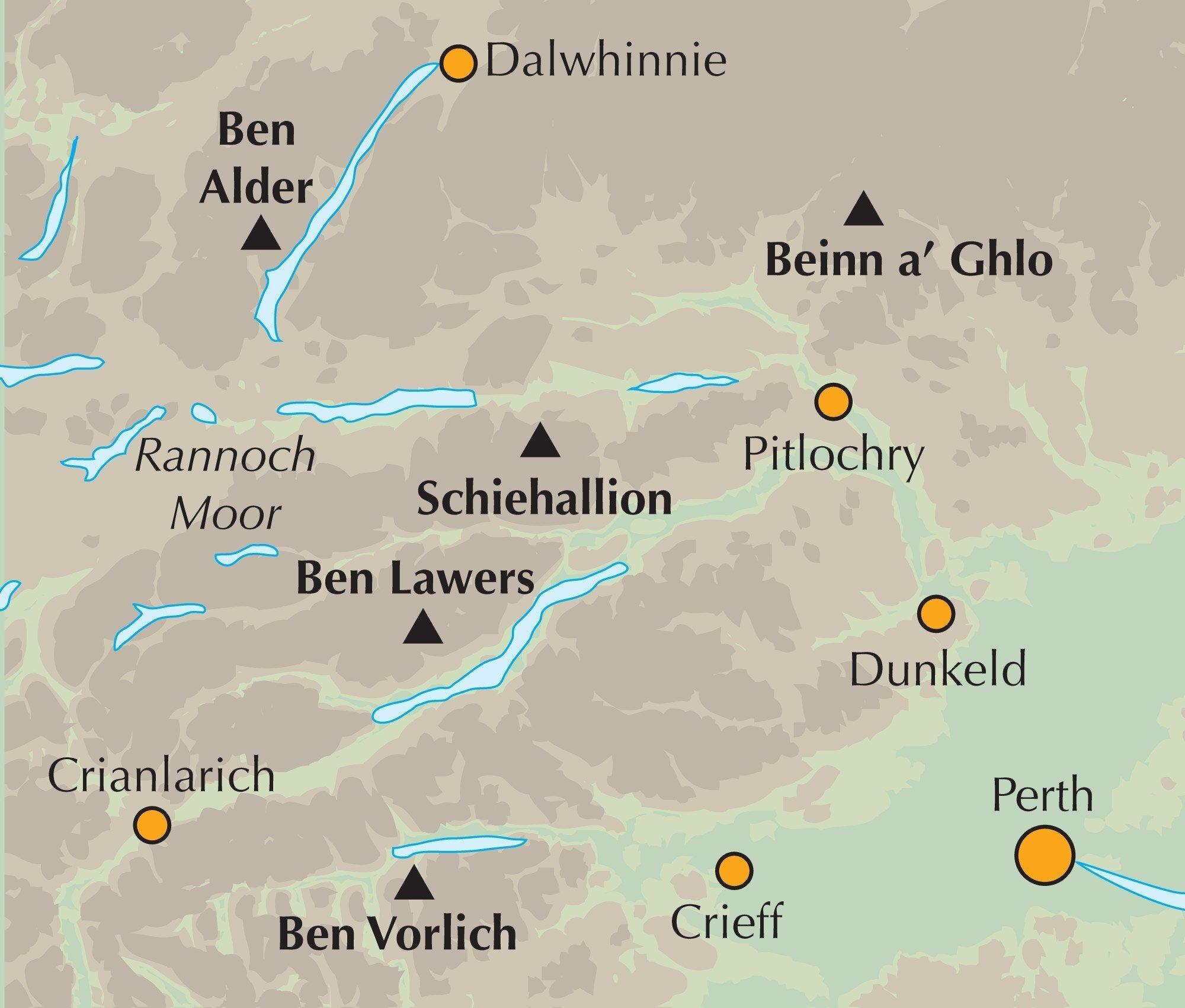 Wandelgids met 80 wandelingen van verschillende niveaus in het gebied van de Perthshire Highlands.