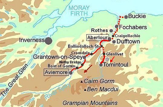 Der Speyside Way ist neben dem West Highland Way und dem Southern Upland Way der dritte im Bunde der klassischen schottischen Fernwanderwege. Er führt von Buckie erst an der Nordsee, dann am River Spey entlang durch das Zentrum der schottischen Whiskyherstellung bis in die mächtigen Grampian Mountains. Auf diesem Weg kommen Sie direkt an einigen der renommiertesten Whiskydestillerien vorbei. Die gesamte Tour wird in mehreren abgeschlossenen Einzeletappen beschrieben. Damit haben Wanderer, die nicht den gesamten Weg laufen möchten, die Möglichkeit, sich auf bestimmte Abschnitte des Weges zu beschränken.