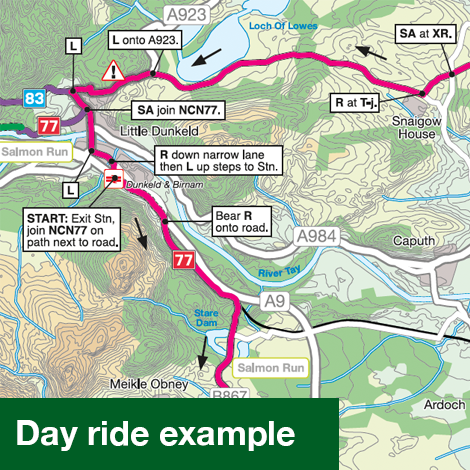 Alle fietsroutes in betreffend gebied staan keurig ingetekend, dus ook die van het National Cycle Network. Ook veel praktische zaken als bezienswaardigheden, stations, supermarkten, fietsenmakers, pubs, hotels etc. Bovendien zijn er vier dagfietstochten op de kaart vermeld.