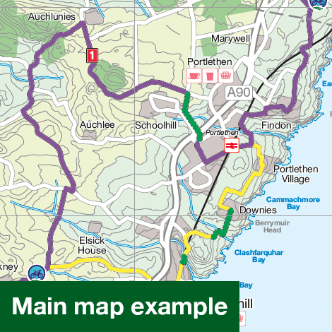 Alle fietsroutes in betreffend gebied staan keurig ingetekend, dus ook die van het National Cycle Network. Ook veel praktische zaken als bezienswaardigheden, stations, supermarkten, fietsenmakers, pubs, hotels etc. Bovendien zijn er twee dagfietstochten op de kaart vermeld.