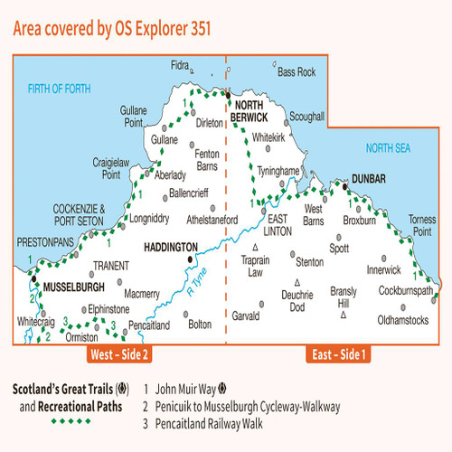- Wandelkaart - Topografische kaart 351 OS Explorer Map Dunbar, North Berwick | Ordnance Survey