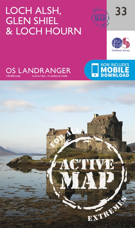 Wandelkaart - Topografische kaart 33 Landranger Active Loch Alsh / Glen Shiel / Loch Hourn | Ordnance Survey (9780319473566)