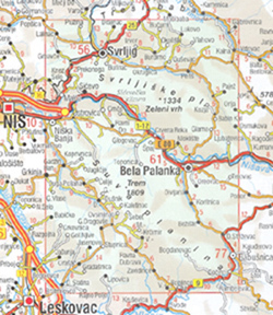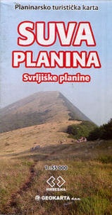 Suva Mountains with the Gorges of the Jelašnicka River on a detailed contoured map at 1:55,000, plus extensive information on the tourist facilities in the area with colour photos of mountain shelters, notes on fauna and flora, etc.