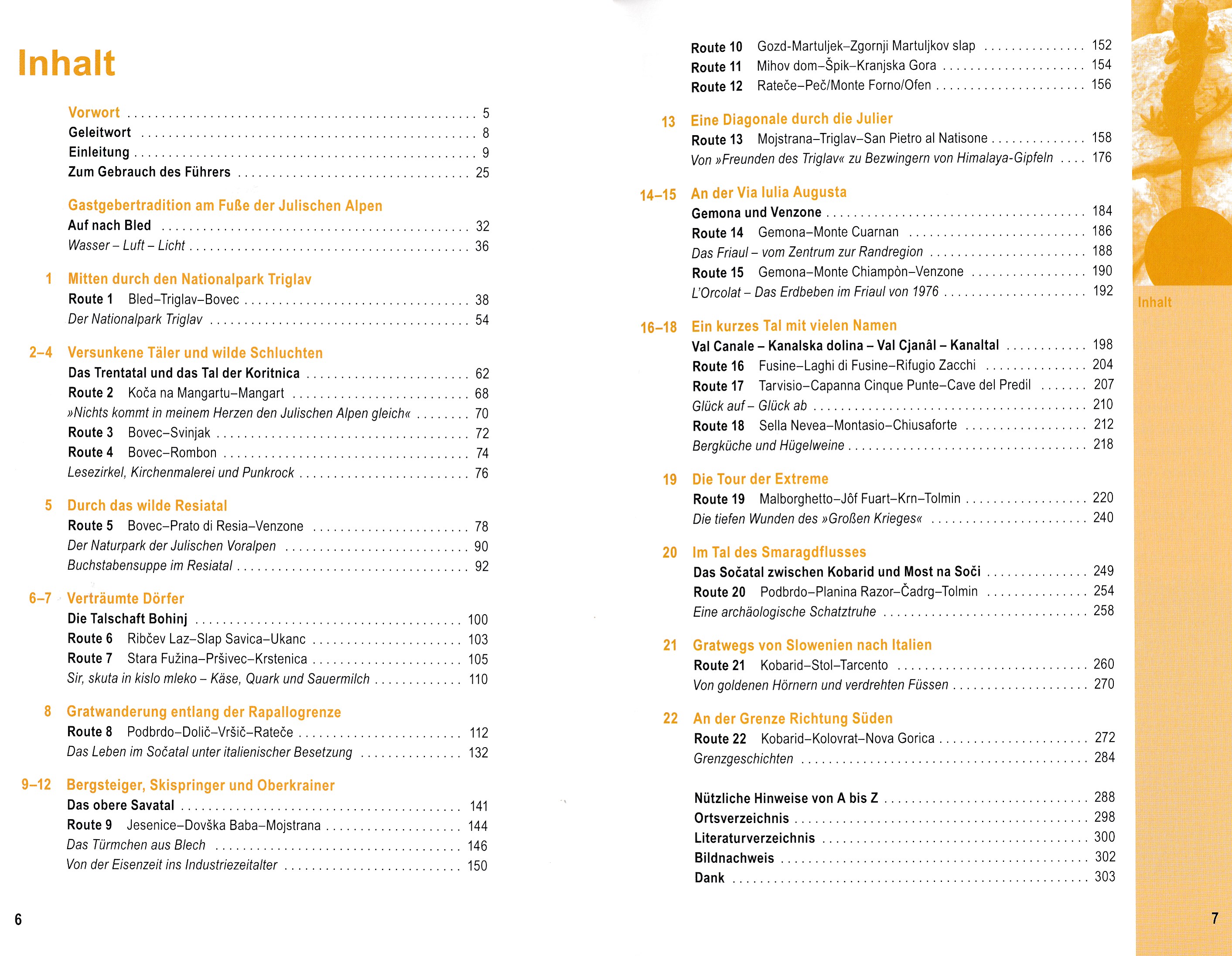 Wandern in den Südostalpen Die Julischen Alpen verbinden Slowenien und Italien und sind seit jeher ein begegnungs- und ereignisreicher Raum. Hier treffen sich drei europäische Sprach- und Völkergruppen: die Germanan, Romanen und Slawen. Dieser Wanderführer ist eine Einladung, die Region in ihrer ganzen Vielfalt zu erkunden. 22 ein- bis siebentägige Touren durch großartige Landschaften, zu glitzernden Seen und auf atemberaubende Gipfel: der Triglav im gleichnamigen Nationalpark, der Naturpark der Julischen Voralpen, die türkisblaue Soca, Jof di Montasio und Mangart. Unterwegs erfährt man von turbulenten historischen Momenten: Österreich-Ungarn ging hier unter, Italien besetzte das Socatal und Jugoslawien grenzte hier an den Westen. Erzählt wird die Geschichte des Slowenischen Alpenvereins, der Eisenverhüttung, der Isonzo-Front während des Ersten Weltkriegs und auch von Sprache, Kultur und Archäologie. Kulinarische Köstlichkeiten - zarte Struklji, währschafte Frico, raffinierte Cjarsons - und die herzliche Gastfreundschaft belohnen einen nach jeder Tour.
