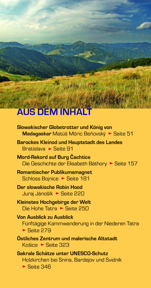 Alle Regionen der Slowakei auf 396 Seiten / Fundierte Hintergrundinformationen / Ausführliche reisepraktische Hinweise / Viele detaillierte Routenvorschläge für Wanderer / Extra-Kapitel zu den Sehenswürdigkeiten in den angrenzenden Regionen Tschechiens, Polens, Ungarns und der Ukraine / 174 Fotos und 12 historische Abbildungen / 32 farbige Stadtpläne und Übersichtskarten - - -Wanderer und Naturfreunde handeln die Slowakei schon lange als Geheimtipp. Aber neben intakter Natur und der Hohen Tatra bietet die Slowakei auch für Kulturtouristen eine Fülle von lohnenswerten Zielen: zahlreiche Schlösser und Burgen, Holzkirchen und Architekturmuseen. Dieser Reiseführer stellt das Land, seine Geschichte sowie seine Sehenswürdigkeiten ausführlich vor. Neben traditionellen Attraktionen wie Bratislava, den Kurbädern und alten Bergbaustädten werden alle für Touristen interessanten Orte vorgestellt. Zahlreiche Wandervorschläge laden ein, die vielfältigen Landschaften kennenzulernen, mehrere Extra-Kapitel stellen die grenznahen Sehenswürdigkeiten der Nachbarländer vor.>>> Weitere Reiseführer zu Osteuropa finden Sie auf der Website des Trescher Verlags