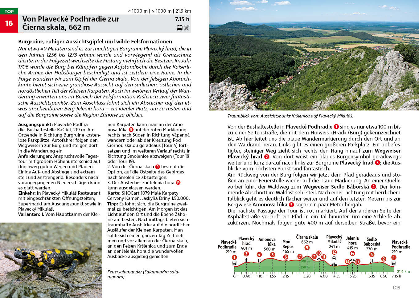 Hinter der Hauptstadt Bratislava an der Donau erheben sich die Kleinen und Weißen Karpaten, anschließend das Javorník-Gebirge, die Slowakischen Beskiden, das Inowetz-Gebirge sowie die Rajetzer und Súľover Berge. Die Vielfalt der Landschaft und der unterschiedliche Charakter der einzelnen Gebirgszüge spiegelt sich in den Wandermöglichkeiten wider: Vom abenteuerlichen Waten durch Donau-Nebenarme bis zu spannenden Felskraxeleien, von familientauglichen Spaziergängen zu kulturell und historisch interessanten Plätzen bis zu mehrtägigen Gebirgsdurchquerungen findet sich für jeden Geschmack die passende Unternehmung. Last, not least sorgen gastliche Berghütten sowie zahlreiche Winzer für das leibliche Wohl während eines anstrengenden Wandertages.