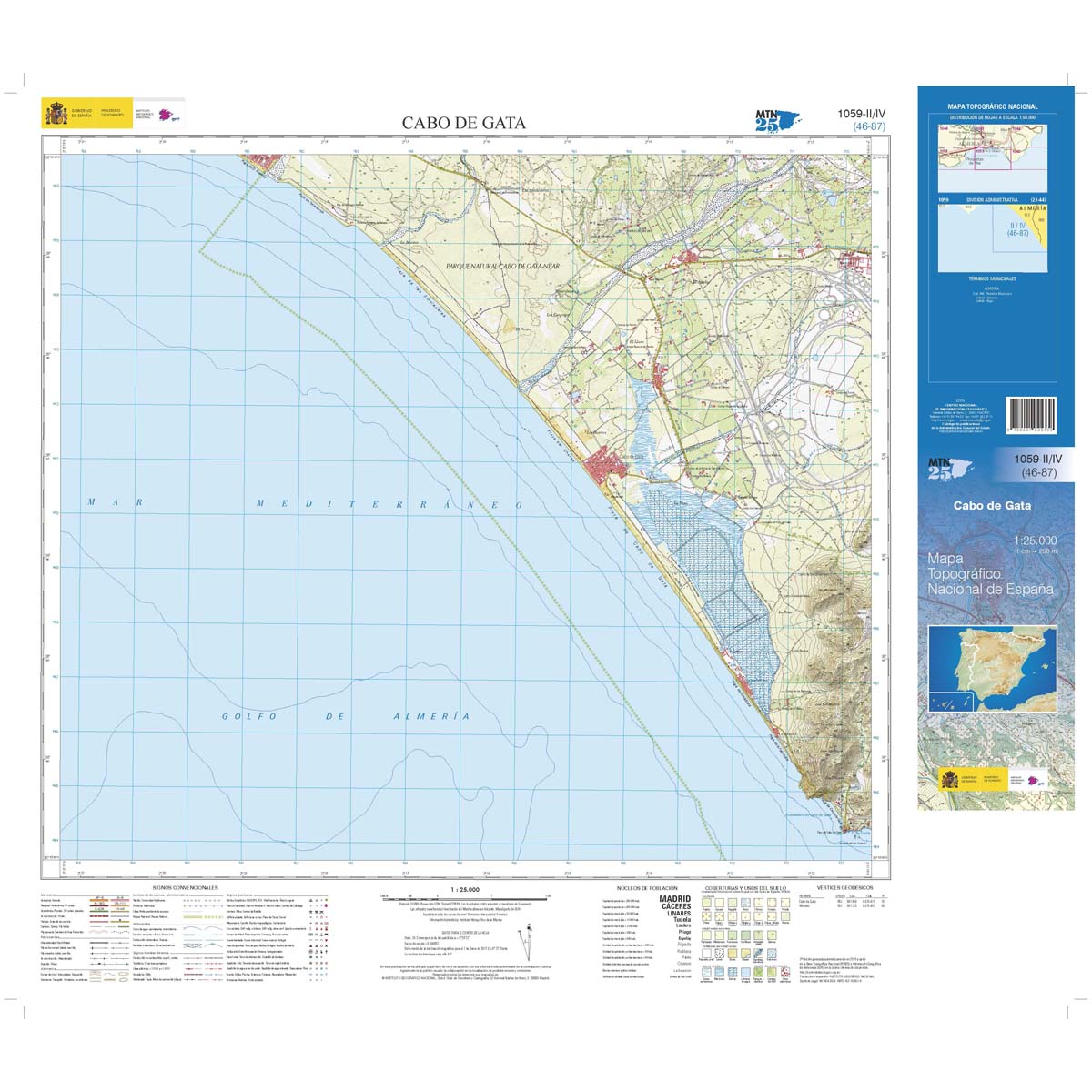 Topografische kaart 1059-II/IV Cabo de Gata | CNIG - Instituto Geográfico Nacional (9788441645738)
