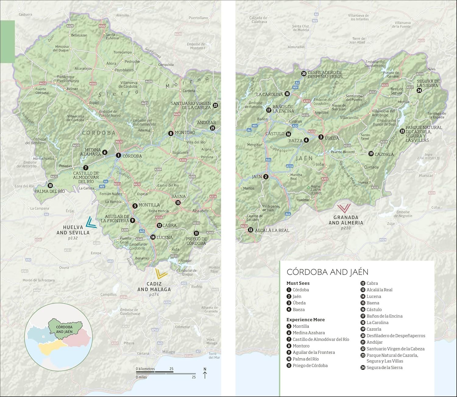 - Detailed chapters, with area maps, cover Seville - El Arenal, Santa Cruz, La Macarena, Parque María Luisa, plus sights across the river - Huelva and Sevilla, Córdoba and Jaén, Cádiz and Málaga, and Granada and Almería