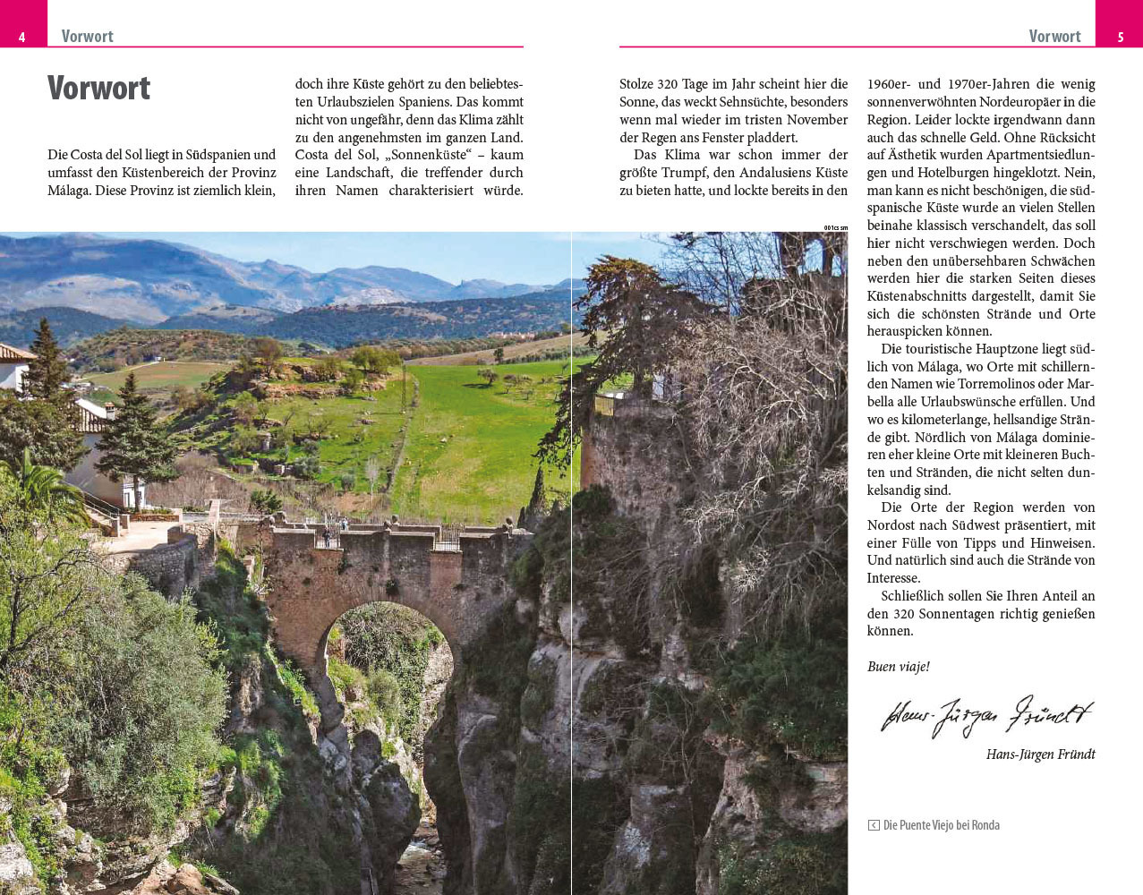 Autor Hans-Jürgen Fründt führt in seinem aktuellen Reiseführer Costa del Sol mit Granada zu allen relevanten Orten und Stränden an der beliebten Sonnenküste in Andalusien, von Gibraltar über Marbella und Málaga bis zur Costa Tropical im Osten. Er lädt dazu ein, den quirligen Mercado Central in Málaga und die Alhambra von Granada zu erleben, die Tropfsteinhöhlen von Nerja zu erkunden, die beeindruckende Brücke über die Schlucht von Ronda oder das strahlend weiße Dorf Frigiliana zu entdecken oder über offenem Feuer gegrillte Sardinen direkt am Strand zu genießen. Dazu gibt es ausführliche Informationen zur Geschichte der Region und zu allen sehenswerten Orten.