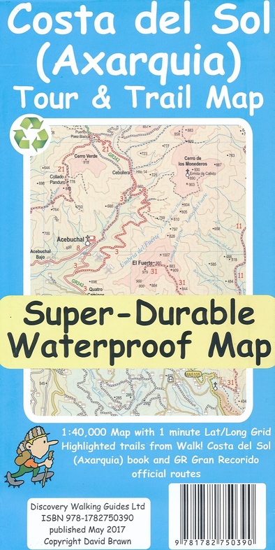For better adventures, use the best map. Costa del Sol (Axarquia) Tour & Trail Super-Durable Map comes with a 2 year adventurous use wear and tear guarantee against splitting or falling apart, see Discovery Walking Guides website for details. From 1 April 2020 a free Custom Map digital edition for Garmin users is available to download from the Discovery Walking Guides website.
