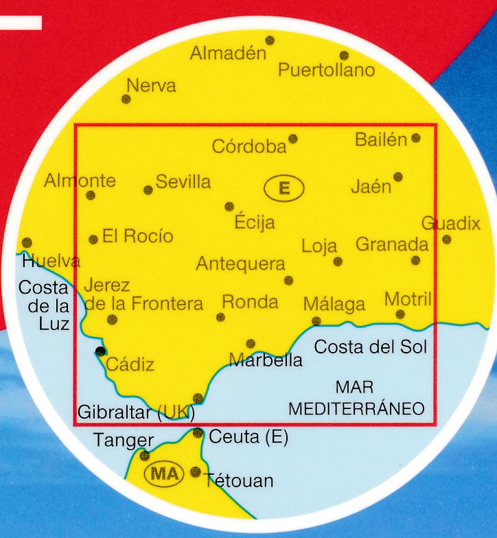 Gedetailleerde kaart van Andalucie met goede aanduiding van alle berijdbare wegen, campings, bezienswaardigheden etc. Enigzins flets kleurgebruik, kaart oogt dan ook druk, maar er staat meer op dan de Michelin kaart.
