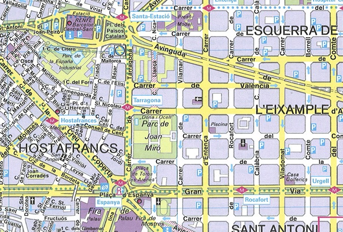 Folded paper street map of Barcelona. Ideal for sightseeing, a map from this range of City Maps is perfect for those who are on longer breaks to major cities. These are also ideal as a reference for people learning how to commute and socialise in a new city. City Maps feature a large index of street names and co ordinates on the reverse, plus other useful insets; such as underground network plans. Publisher: Hallwag. Scale: 1:15 000